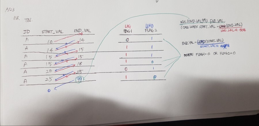 FLAG2의 경우, END_VAL값이 다음 행의 START_VAL과 같은 경우에는 1이 채워지고 다르다면 0이 채워집니다.