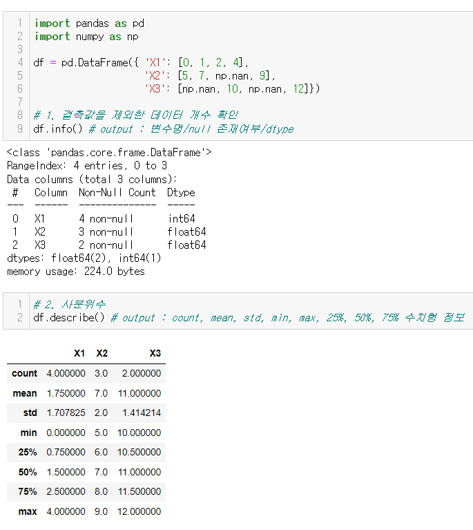.describe() # output : count, mean, std, min, max, 25%, 50%, 75% 수치형 정보