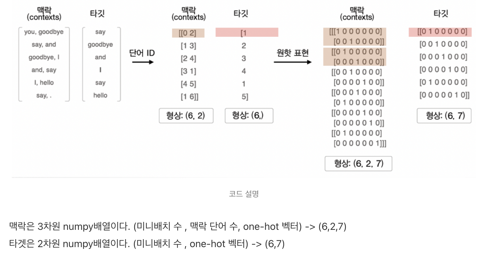 Word2Vec에서 입력은 모두 원-핫 벡터