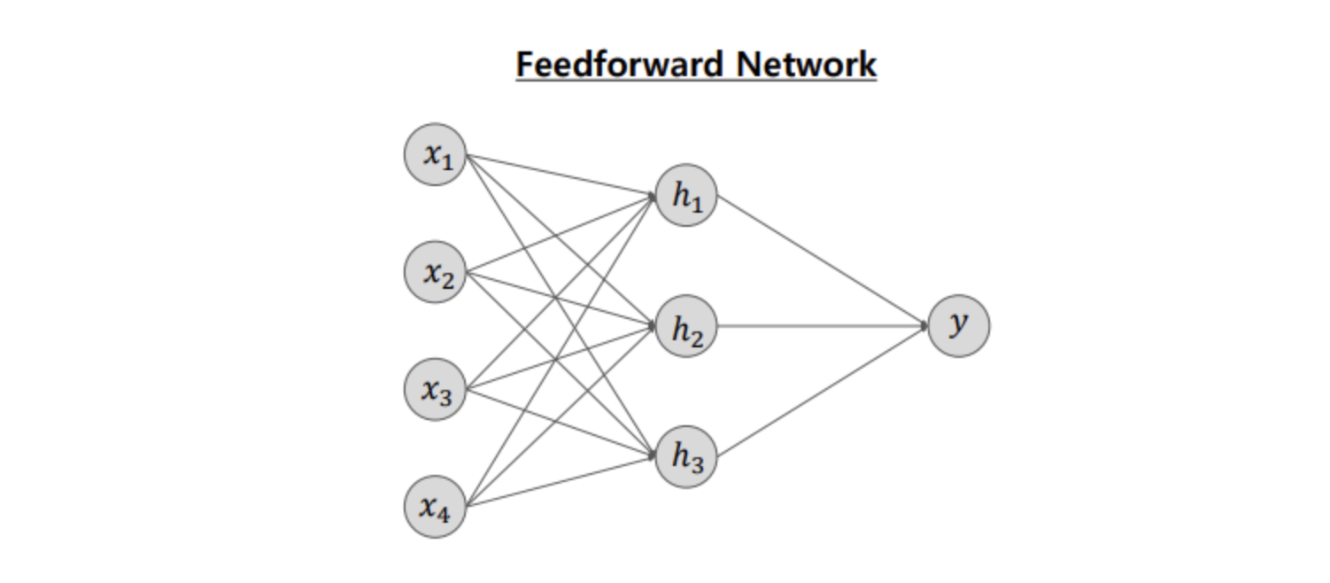 - Feedforward network(순방향 신경망) : 가장 기본이 되는 신경망 구조(하기 사진)