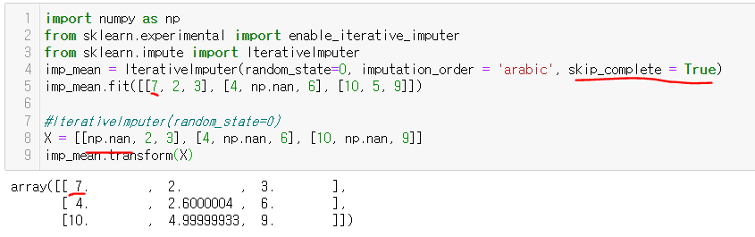 imputation_order = {‘ascending’, ‘descending’, ‘roman’, ‘arabic’, ‘random’}, default=’ascending’